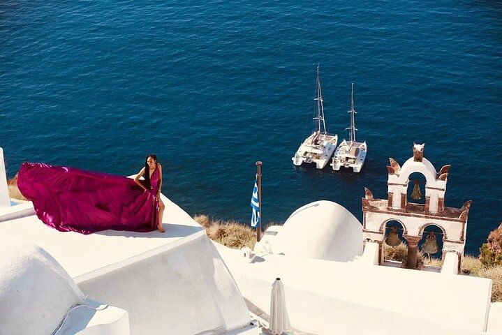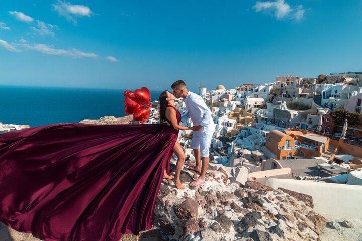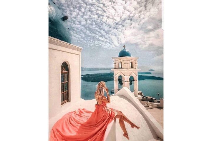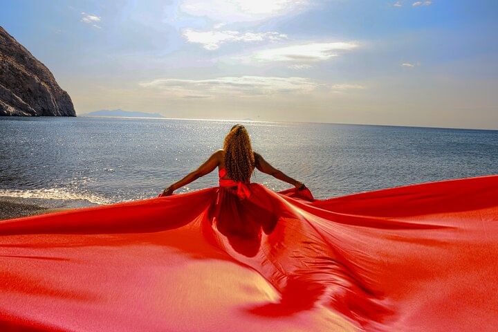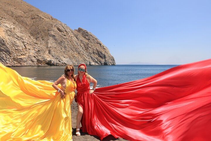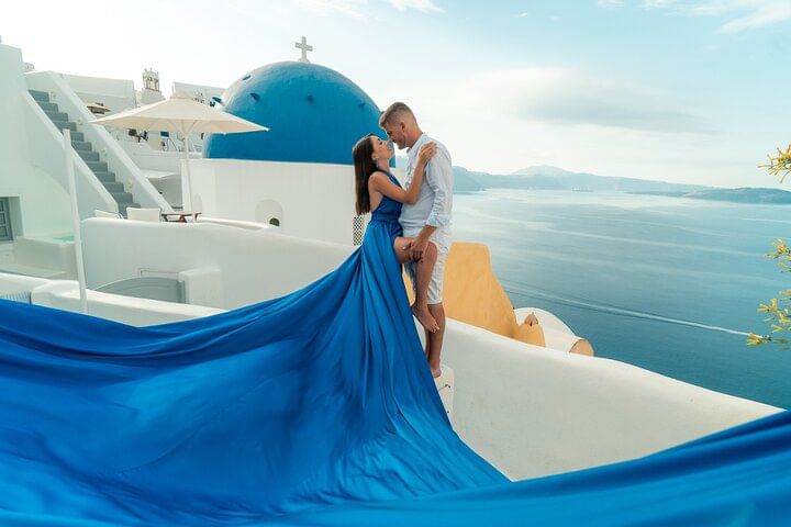 Capture stunning moments in a magical flying dress photoshoot set against the iconic backdrop of Santorini's white houses and blue domes. This unique experience allows you to feel like a model as you twirl in a flowing dress, creating breathtaking images that will last a lifetime. With a professional photographer guiding you, every shot is designed to highlight the beauty of the landscape and your elegance. Perfect for couples, friends, or solo adventurers looking to create unforgettable memories in one of the world's most picturesque locations.