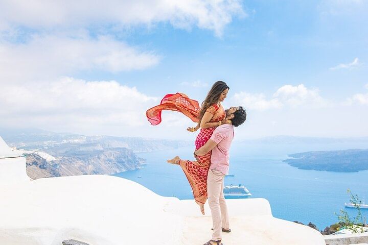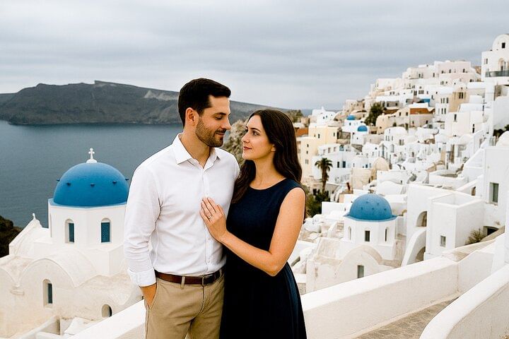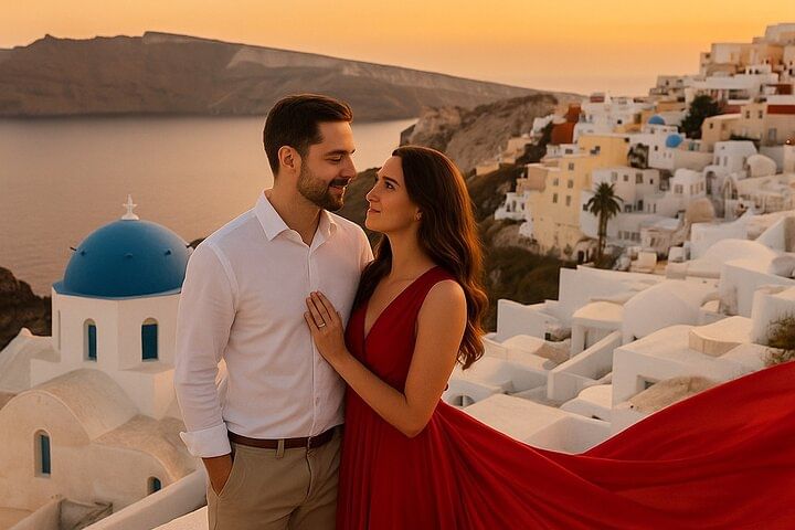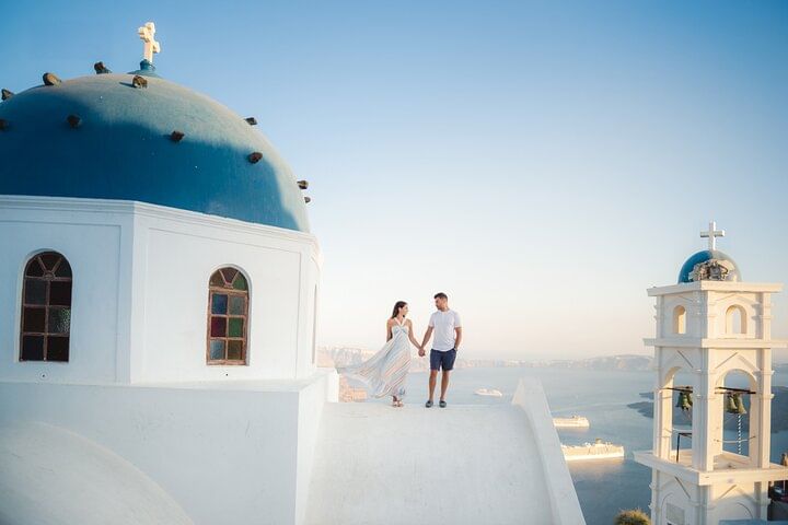 Enjoy a fully private, guided photoshoot led by a professional photographer who knows Santorini's best kept secrets, like breathtaking spots with blue domes and caldera views.